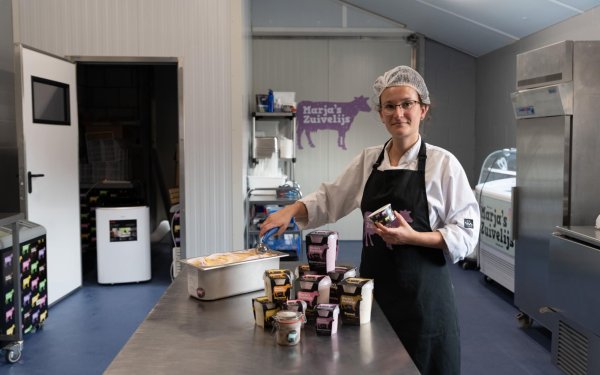 Op Boerderij De Laak in Terheijden maakt Marja ijs van de melk van eigen koeien, zonder toevoeging van smaak- en kleurstoffen.